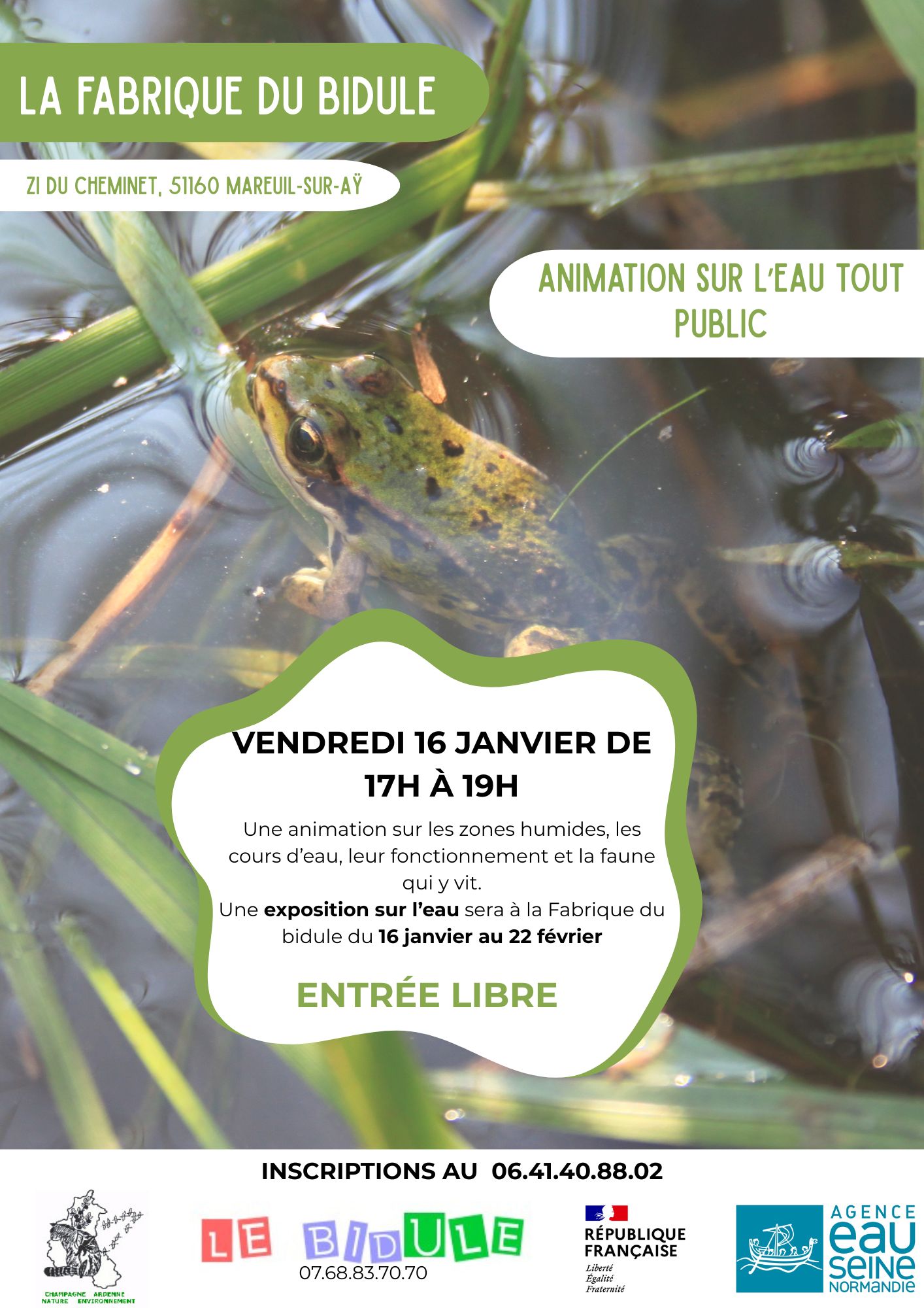 L'association Champagne Ardennes Nature Environnement se joint au Bidule pour vous une animation sur l'eau , le milieu aquatique et la faune. Bienvenue à tous.